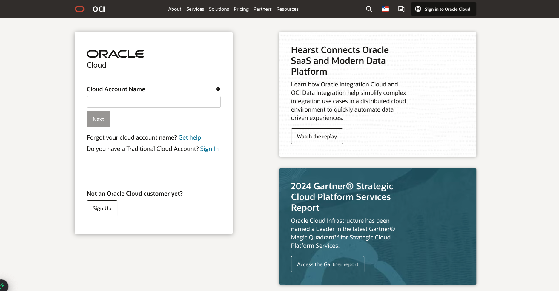An image of the OCI account sign in screen.